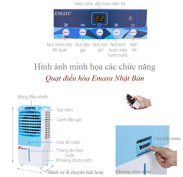 Ngoài ra, không chỉ quan tâm đến chất lượng sản phẩm, máy làm mát Emasu Nhật Bản còn được nhiều khách hàng yêu thích bởi những sản phẩm có mẫu mã đẹp, thiết kế gọn gàng, phù hợp với nhiều không gian sử dụng, màu sắc nhẹ nhàng, tạo cảm giác dễ chịu trong mùa nắng nóng…